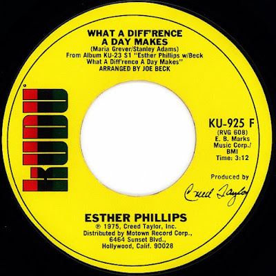 Al leer los créditos de "What a Diff'rence a Day Makes", uno podría asumir fácilmente que es un álbum de jazz.Este LP de 1975 fue producido por Creed Taylor y arreglado por el guitarrista Joe Beck;los otros participantes van desde Michael Brecker en saxo tenor, David Sanborn en saxo alto y Randy Brecker en trompeta, hasta Steve Khan en guitarra y Don Grolnick en teclados.Con esa formación, Esther Phillips podría haber entregado fácilmente un álbum de jazz de primera clase.Pero "What a Diff'rence a Day Makes" no contiene jazz, ni siquiera jazz-funk o soul-jazz.Sin embargo, es un soul excelente.